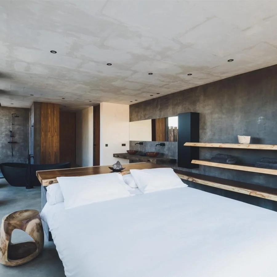 Located in a nature reserve facing the Calderón Hondo volcano in Lajares, this house embodies the spirit of the region with its modern, minimalist design. The décor is elegant and understated, contrasting raw, warm materials with a sophisticated touch, allowing nature to be ever-present throughout the space.