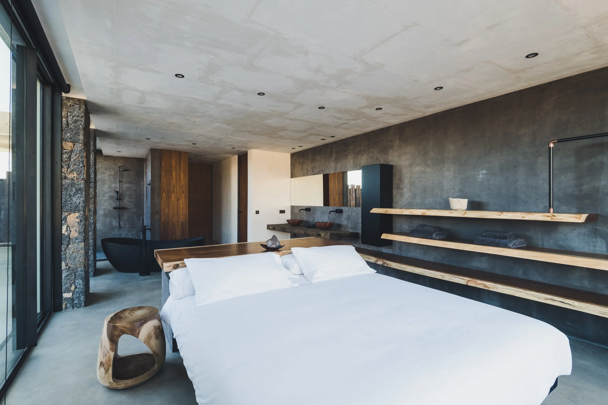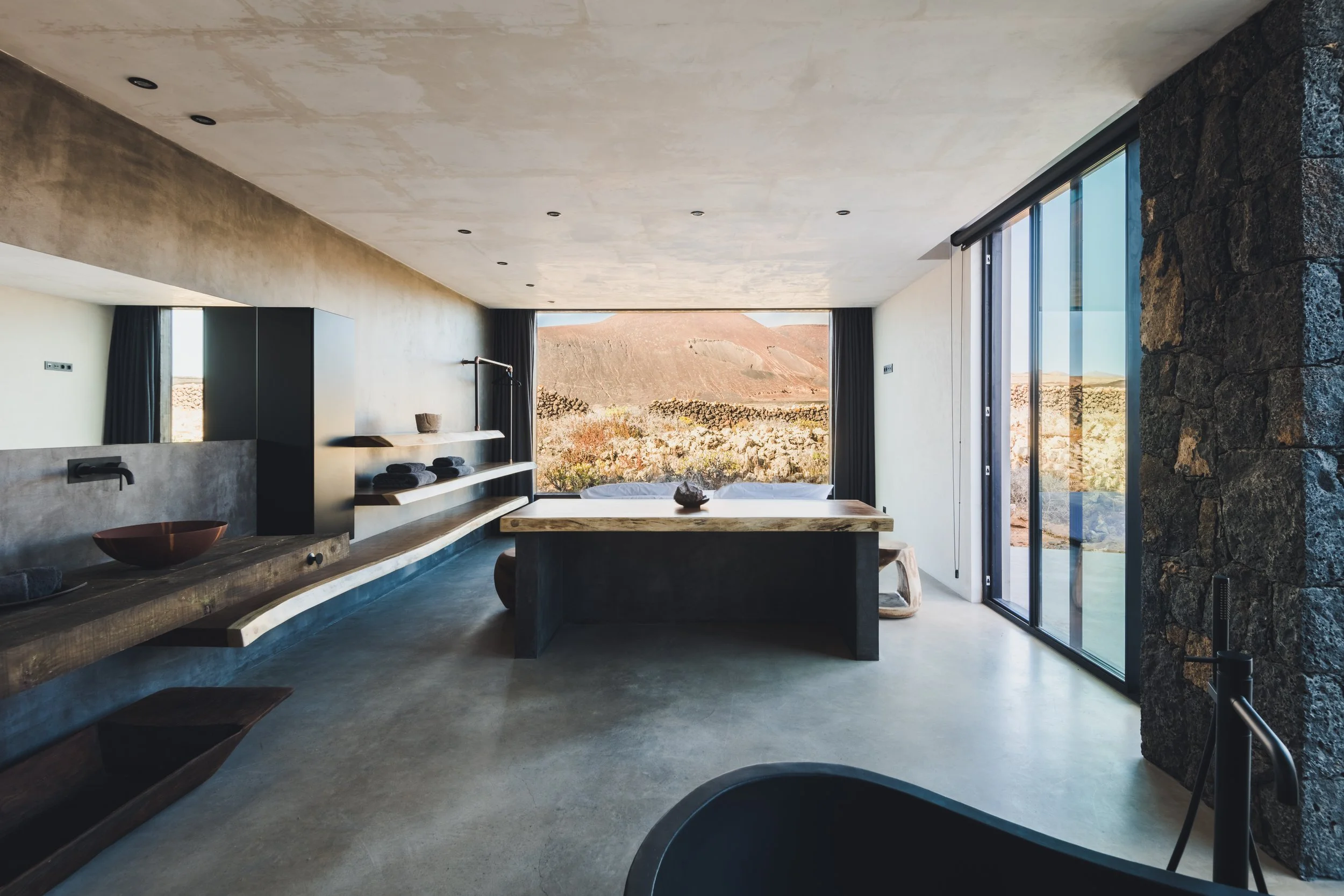 Located in a nature reserve facing the Calderón Hondo volcano in Lajares, this house embodies the spirit of the region with its modern, minimalist design. The décor is elegant and understated, contrasting raw, warm materials with a sophisticated touch, allowing nature to be ever-present throughout the space.